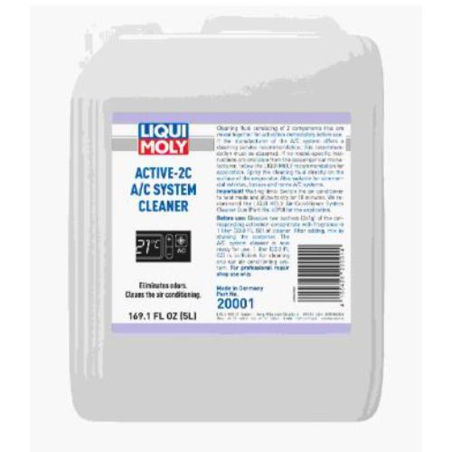 Especificaciones / Aprobación: Active-2C A/C System Cleaner. Aspecial Liqui Moly developed cleaning fluid consisting of 2 components that are mixed together for activation immediately before use. The mixture is used to clean and eliminate unpleasant odors from air conditioning systems in cars, commercial vehicles, buses or homes without the need for dismantling. After completed cleaning it leaves behind a pleasant fresh fragrance. For best results use only with Liqui Moly Air-Conditioner System Cleaner Gun (part no. 4090). For professional use only.